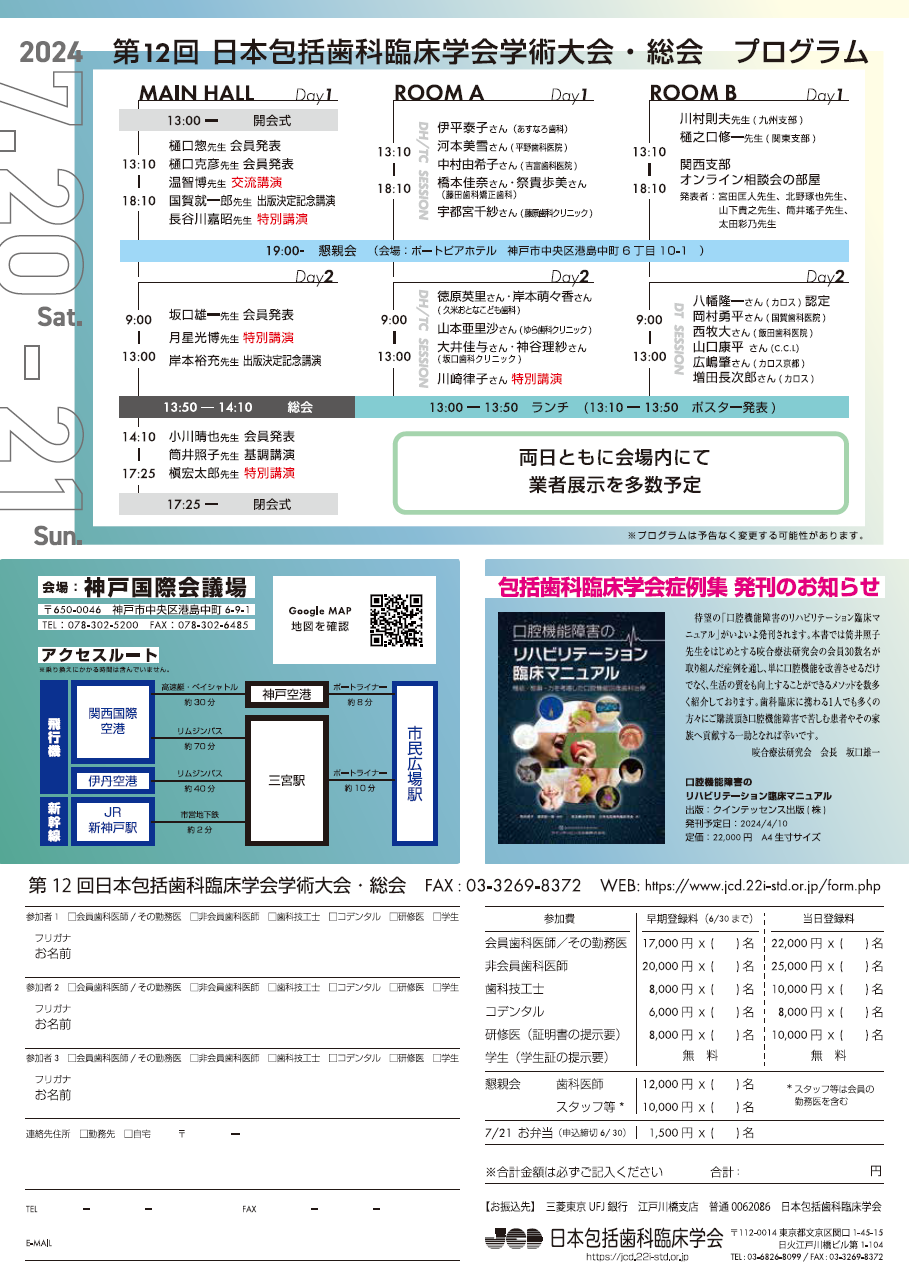 | 第12回 日本包括歯科臨床学会学術大会・総会 in 神戸 |